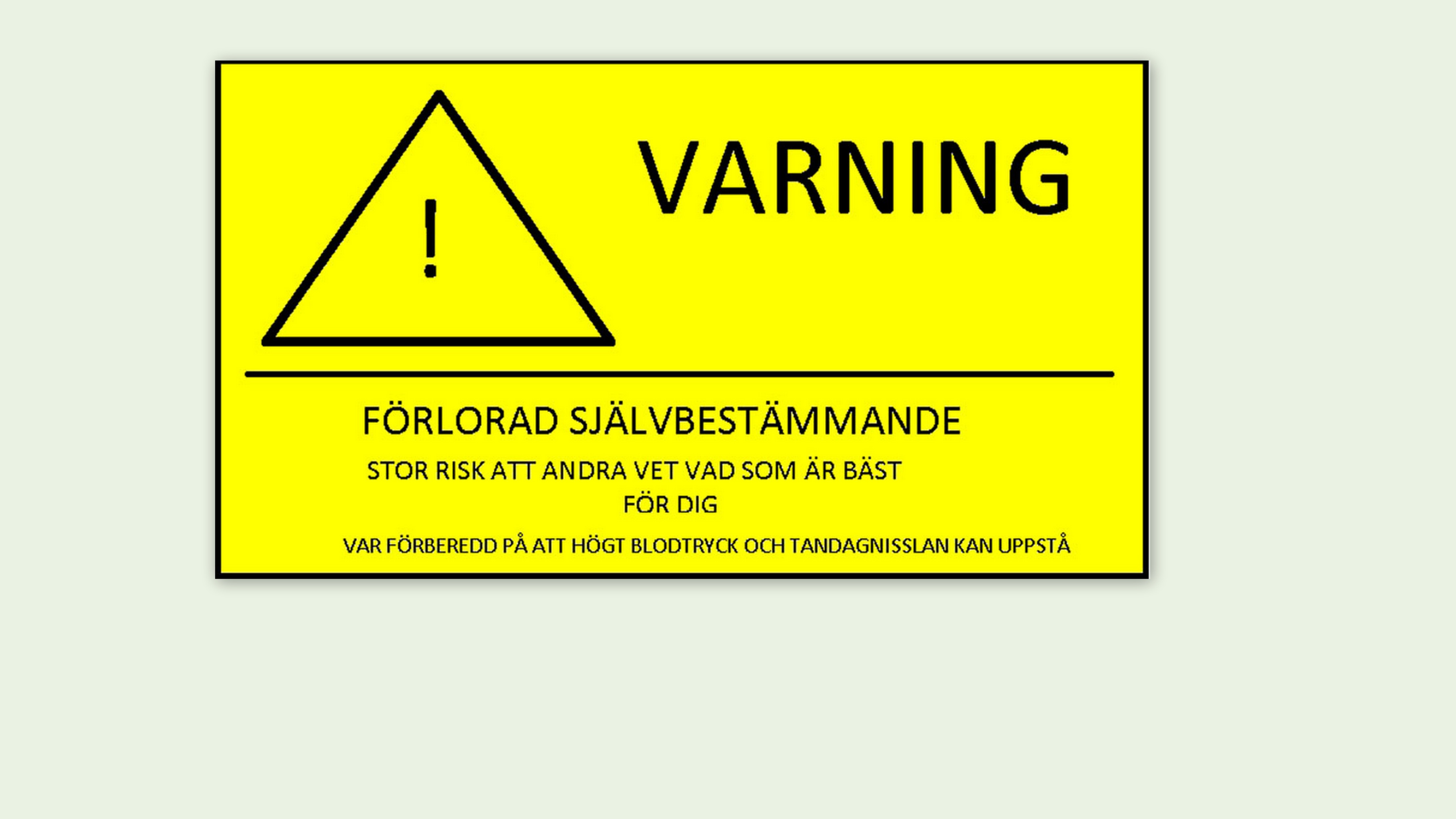 varningsskylt3 Publicerat av tudelad on 6 mars, 20172 januari, 2019 Dela detta: Dela på X (Öppnas i ett nytt fönster) X Dela på Facebook (Öppnas i ett nytt fönster) Facebook Dela på Reddit (Öppnas i ett nytt fönster) Reddit Dela på LinkedIn (Öppnas i ett nytt fönster) LinkedIn Dela på WhatsApp (Öppnas i ett nytt fönster) WhatsApp Mer Email a link to a friend (Öppnas i ett nytt fönster) E-post Gilla Laddar in …